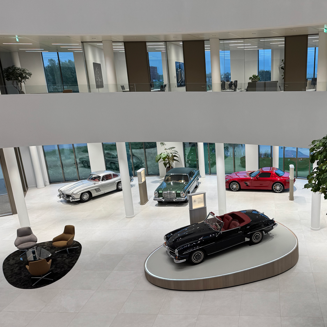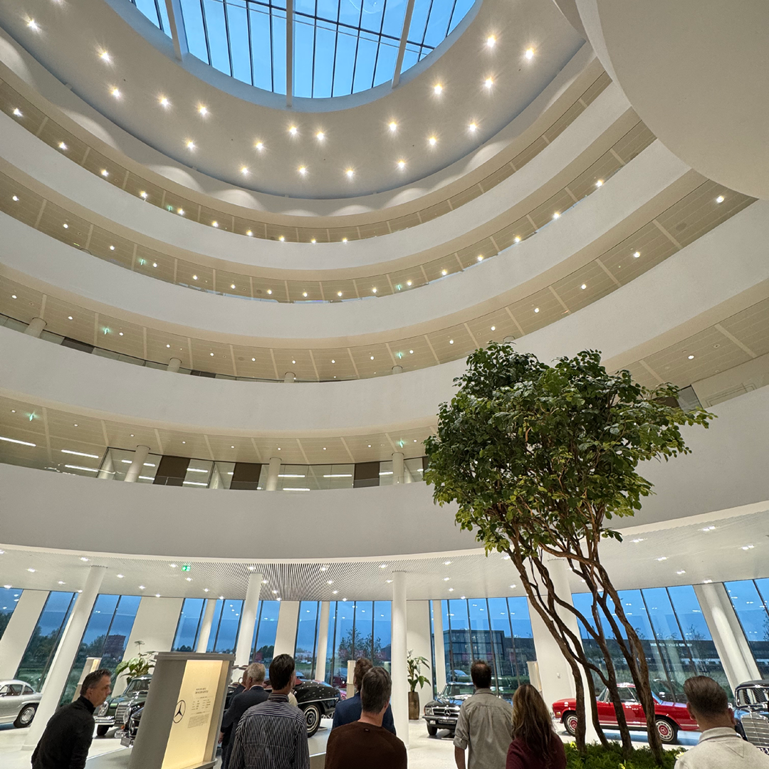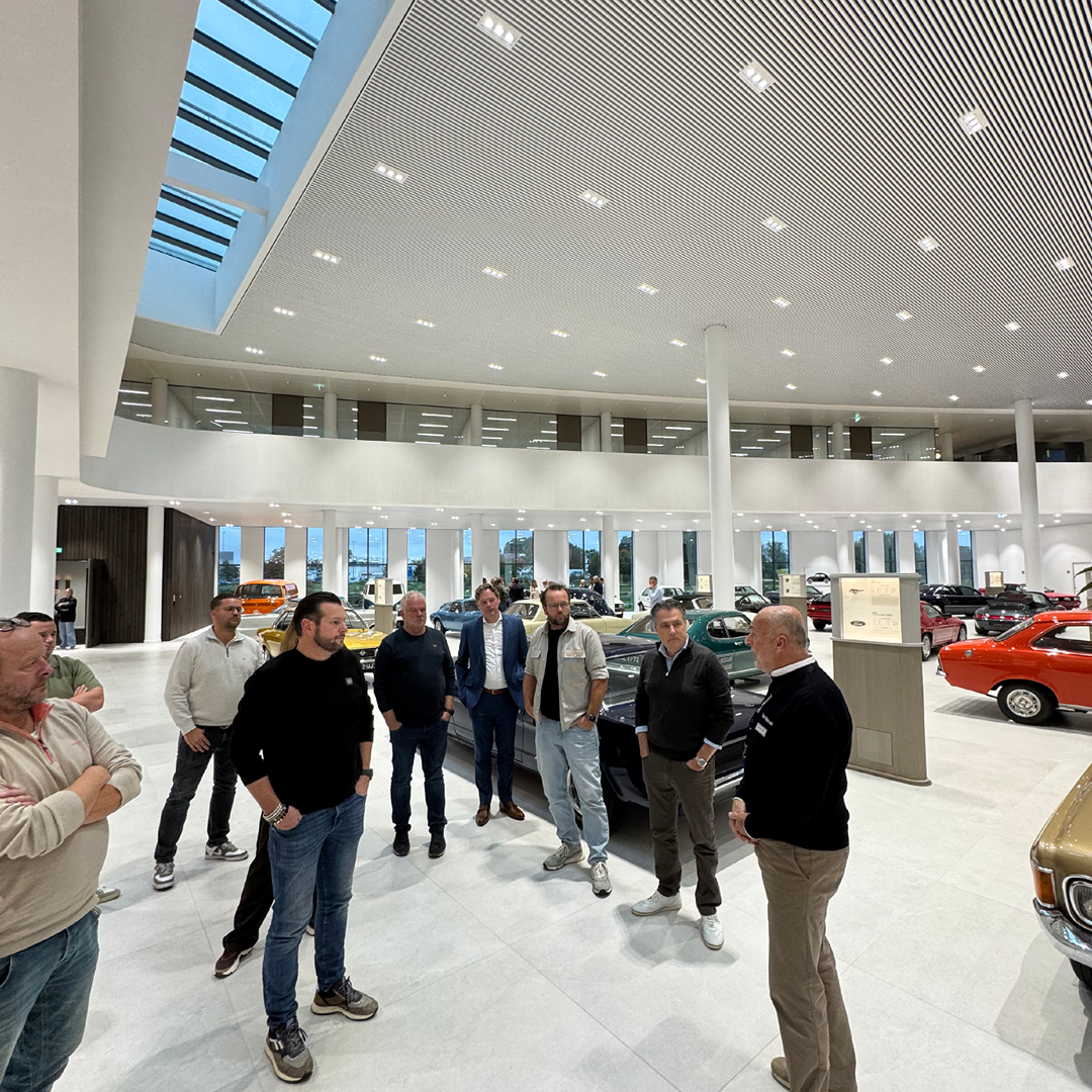 Aansluitend volgde een rondleiding in drie groepen door het schitterende pand. We kregen een kijkje achter de schermen van de verschillende afdelingen en ontdekten hoe de processen binnen het bedrijf zijn georganiseerd. Een van de hoogtepunten was het bezoek aan het automuseum, waar een bijzondere collectie klassiekers en iconische modellen de rijke historie van Van Mossel tot leven bracht.