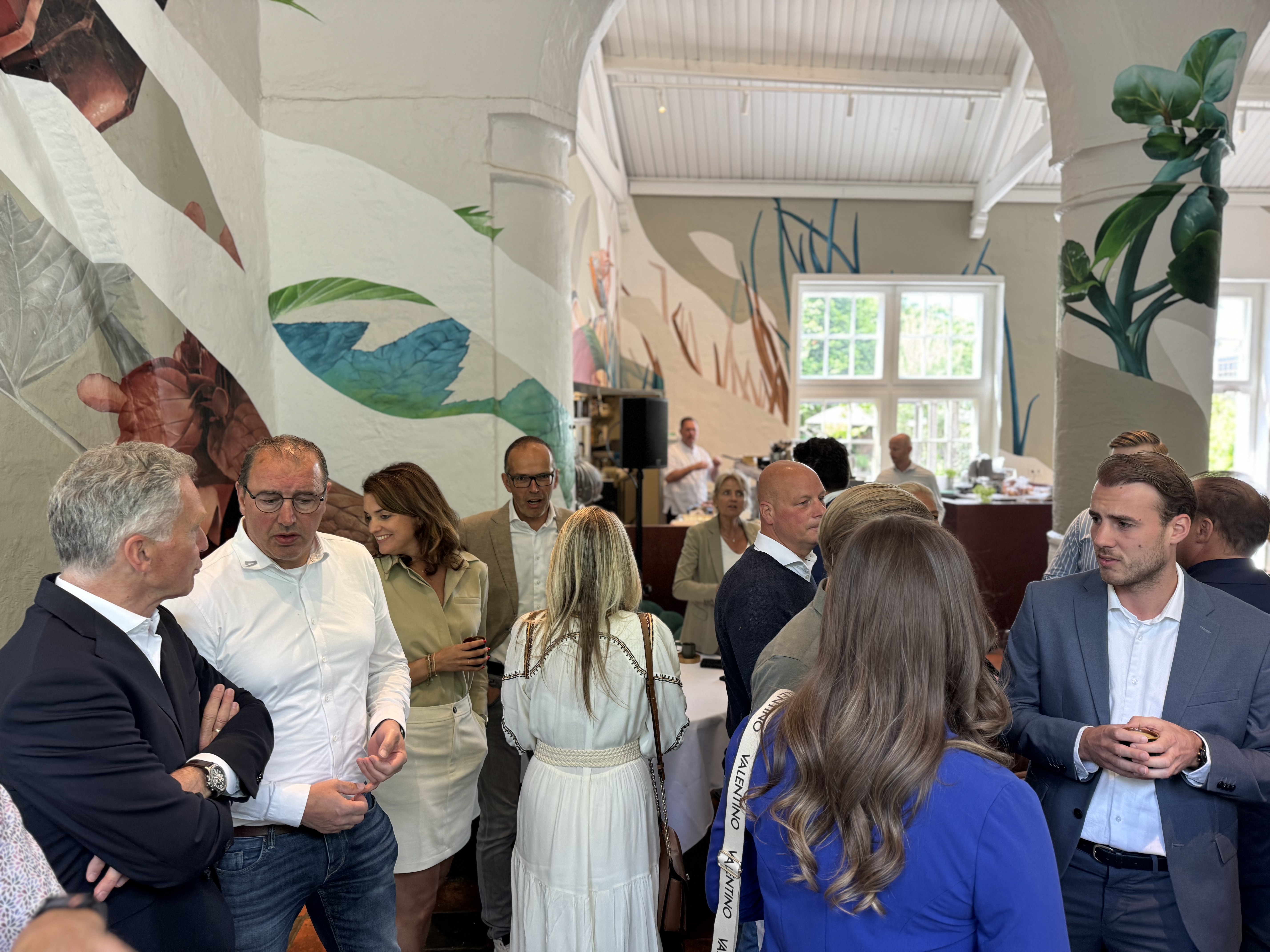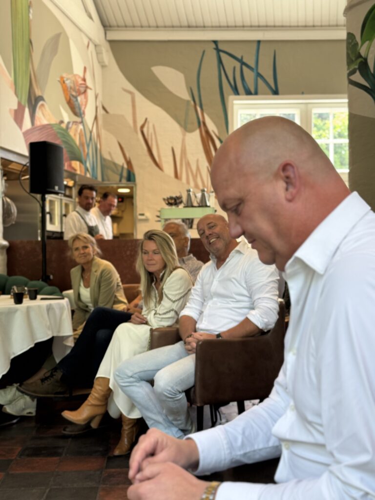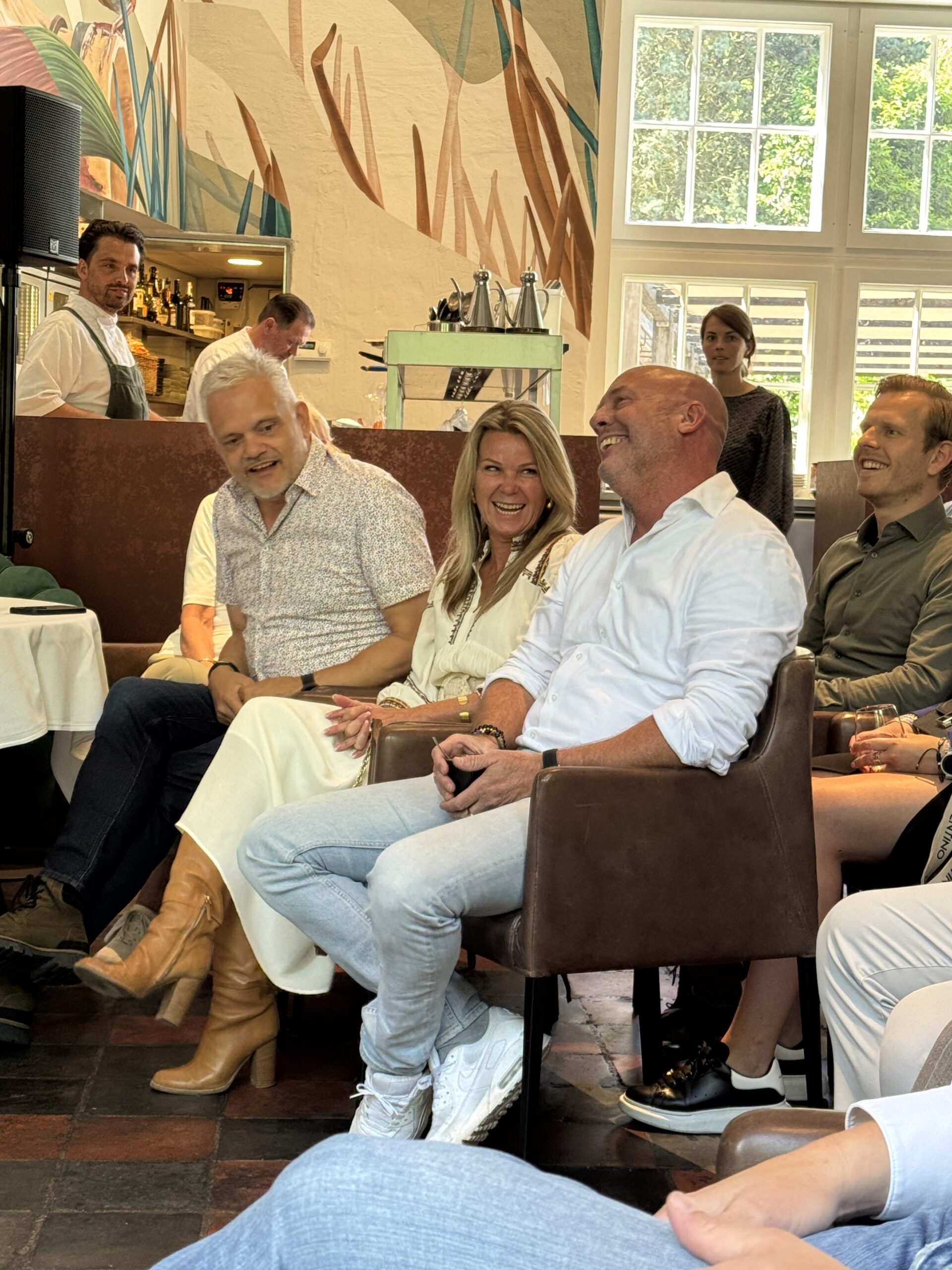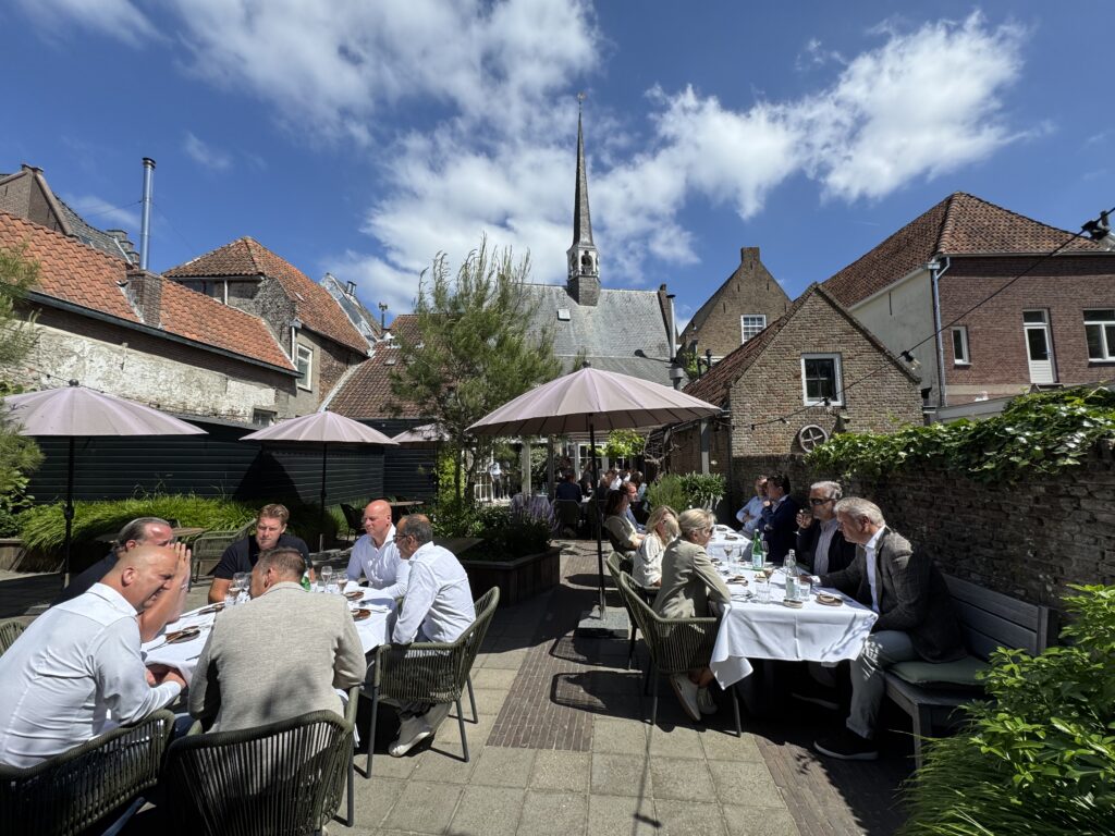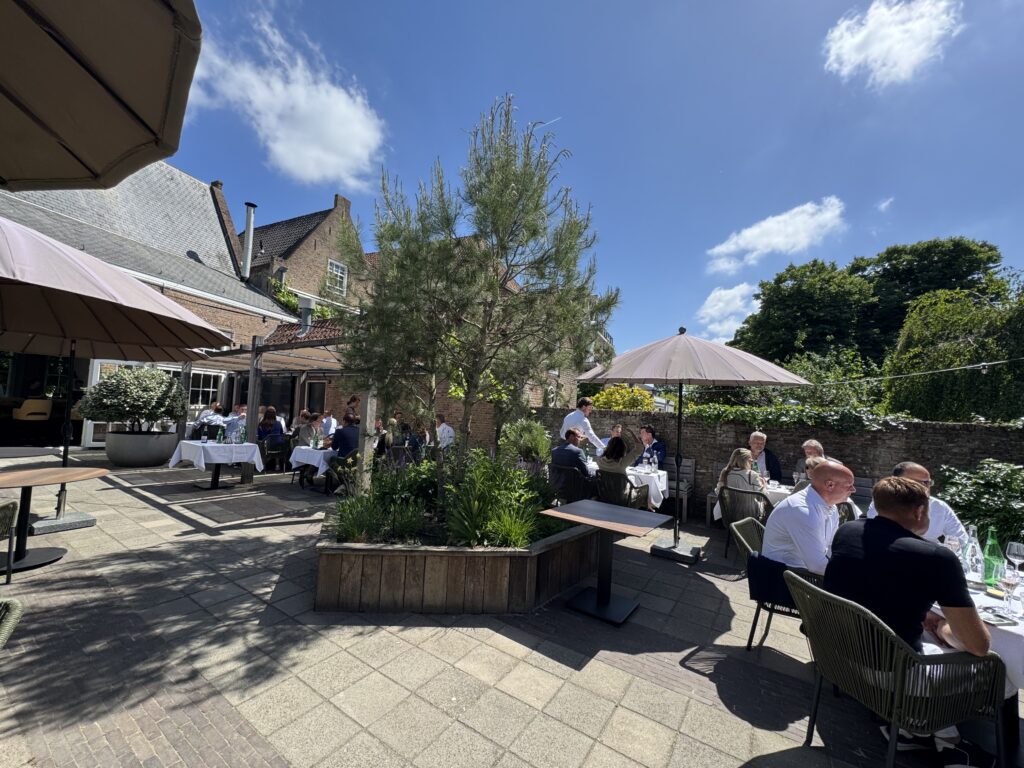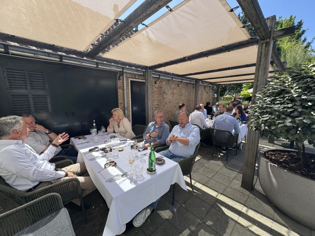 Aansluitend genoten de gasten van een voortreffelijke lunch. Dankzij het prachtige weer kon er buiten in de tuin worden gegeten. Onder het genot van een feestelijke amuse en een glas bubbels werd nog volop nagepraat over de presentatie. De driegangenlunch, bereid met verse seizoensproducten, vormde het culinaire hoogtepunt van een middag vol inspiratie en waardevolle ontmoetingen.