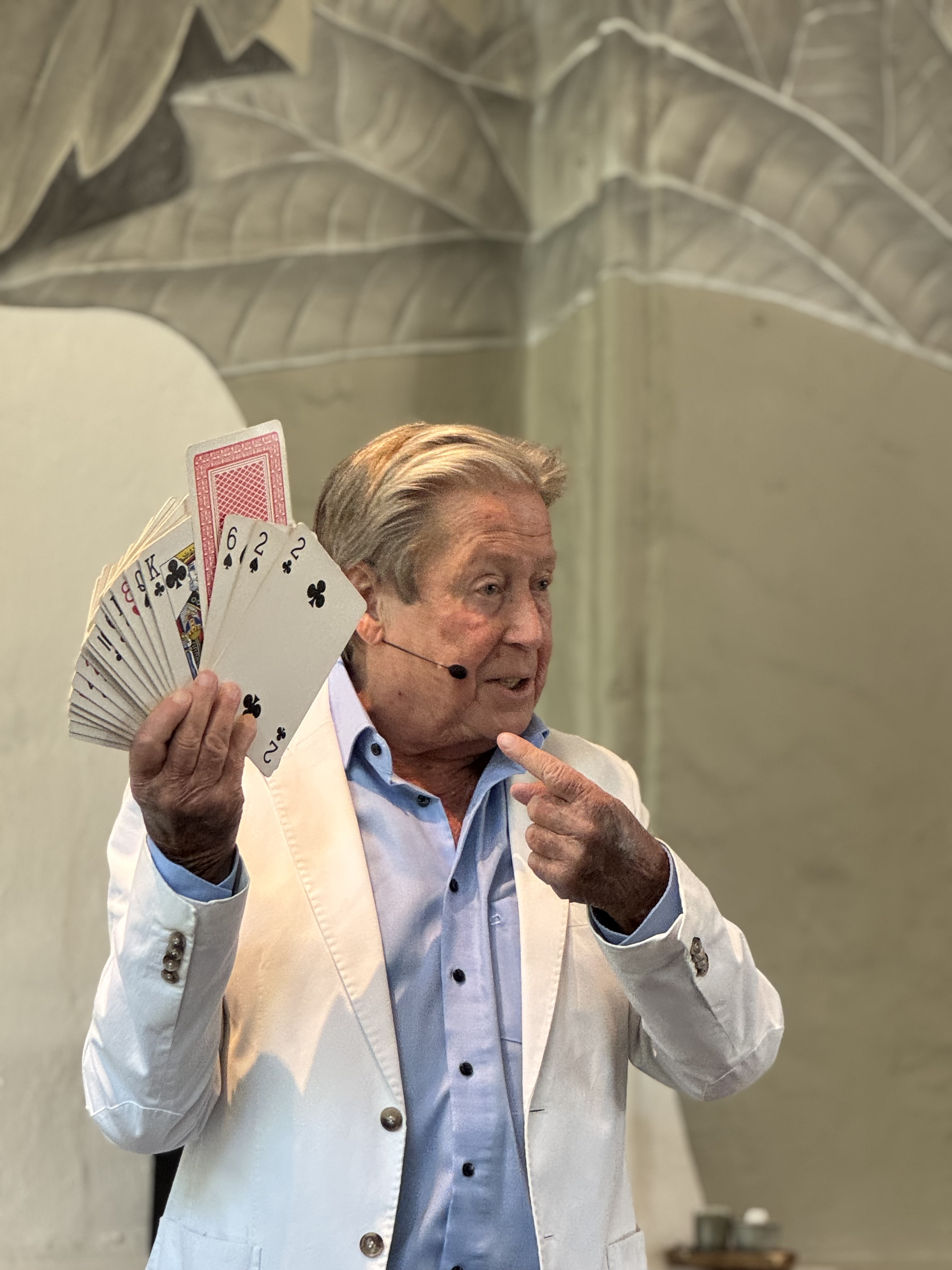 Kazàn benadrukte het belang van blijven geloven in jezelf, ook wanneer het tegenzit: “Het gaat er niet om hoe hard je kunt slaan, maar hoeveel je kunt incasseren.” Zijn positieve energie en luchtige humor kwamen niet alleen terug in zijn levensverhaal, maar ook in de trucs en illusies waarop hij ons trakteerde. Hij liet een aantal fraaie illusies zien, waarbij het publiek volop werd betrokken (zou Saskia nog onder hypnose zijn?).
