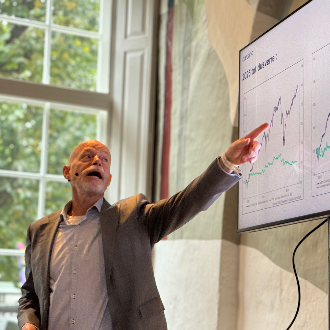 Na het welkomstwoord van VOG-voorzitter Rom van Oers kregen de aanwezigen een boeiende presentatie van Corné van Zeijl, bekend als beursanalist, columnist en strateeg bij Cardano. Met zijn kenmerkende humor, scherpe analyses en toegankelijke manier van presenteren wist Corné het publiek van begin tot eind te boeien.